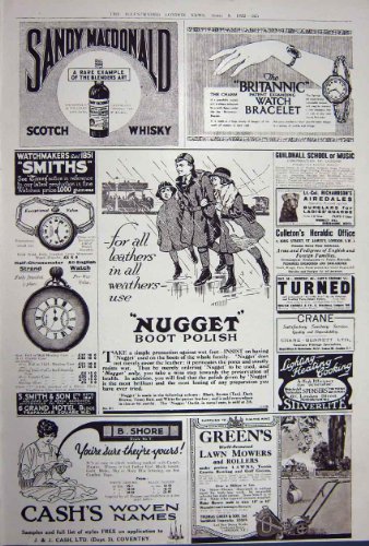 Advertisement 1922 Austin Motor Car Polish Whisky Mower An Advertisement Page And Reverse From The Illustrated London News Date 1922, An Illustrated Weekly Newspaper Weeks Date As Shown On Top Of Page, The Size Of Each Page Is Approx ( including margins as shown )imately 15 X 10.5 Inches (380X270). All Are Genuine Prints, The Illustrated London News Is An Illustrated Magazine Which Was First Printed In 1842 And Is The Finest Pictorial Example Of A Historic Social Record Of British And World Events Up To The Present Day. The Iln Is Known For Its Coverage Of The Following Subjects The Wars, Ships, Boats, Guns, Sailing, Portraits, Fine Art, Old And Antique Prints, Wood Cut, Wood Engravings, Early Photographs, Victorian Life, Victorian Culture, Kings, Queens, Royalty, Travels, Adventures, Natural History, Birds, Fish, Mammals, Fishing, Hunting, Shooting, Fox Hunting, Sports Including Tennis, Cricket, Football, Horse Racing, Politics And Many More Items Of Interest Founded By Herbert Ingram May 14Th 1842.
